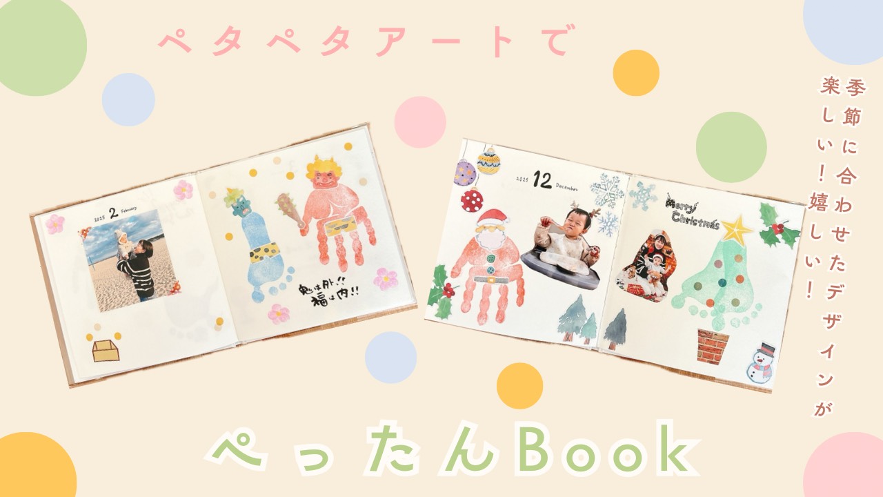 お子様の成長記録をかわいくおしゃれに残すことができるペタペタアートの新しいコンテンツ、“ぺったんBook”のその月の1ページを作ります。